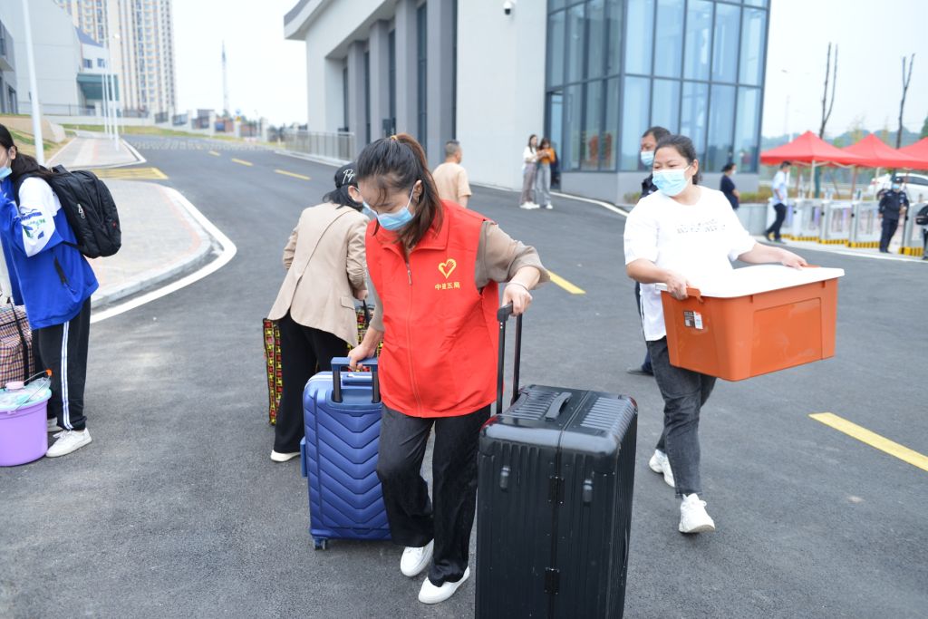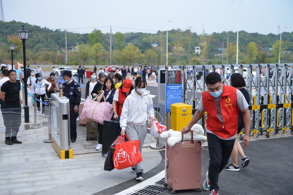 校园里,多趟接驳车虚位以待,数百名党员志愿者、学生志愿者、中建五局志愿者、物业人员、保洁阿姨、公安交警纷纷参与到迎接学生的工作中,忙碌地穿梭在各个阵地,搬运行李、指引路线,给新生和家长们送来了最贴心的温暖和感动。强有力的后勤和安保,热忱周到、有序指挥,让每一位学生和家长感受到新校园的安全稳定、舒适放心。