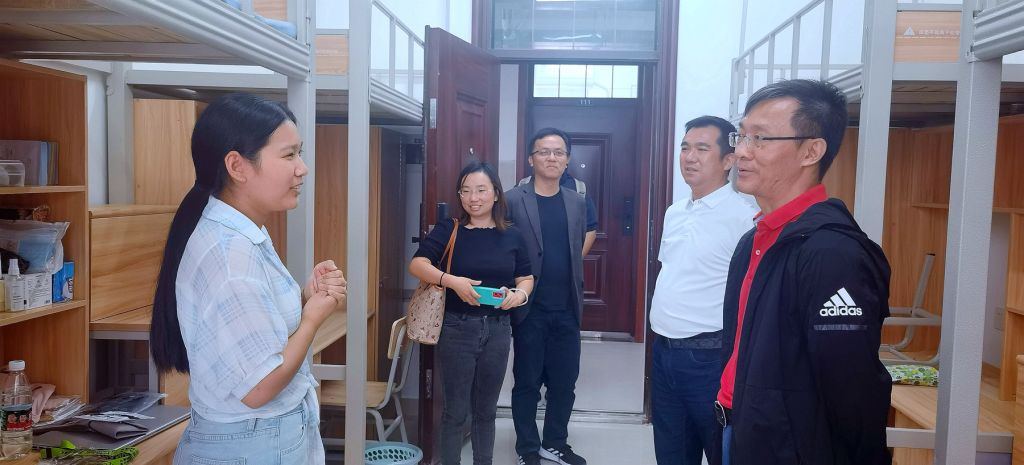 当日清晨,学校领导深入监控室、入校接待点、校园接驳点、学生食堂、学生宿舍、校园服务部等重点场所检查报到准备工作,迎接学生的到来。学校党委书记肖思源关切地询问同学们新学期的学习计划,提醒同学们注意个人防护,搬入新校区后尽快适应新校区新学期的学习生活。