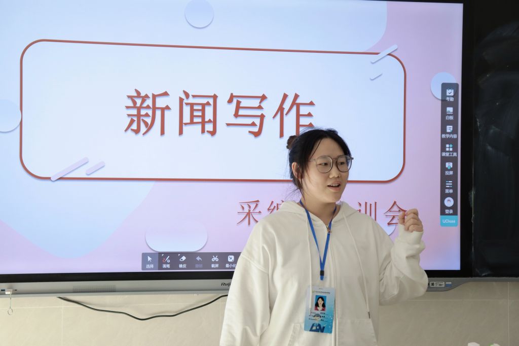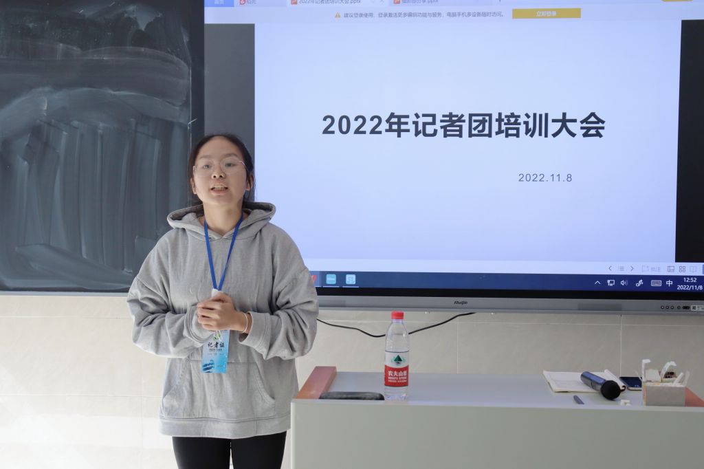 王轩萱对新闻排版与采写要求进行了补充,她说本次会议是一个传承启新的会议,新记者应认真听取老记者的建议和经验分享,这些经验都是他们在过去的一年里实践的总结,十分宝贵。