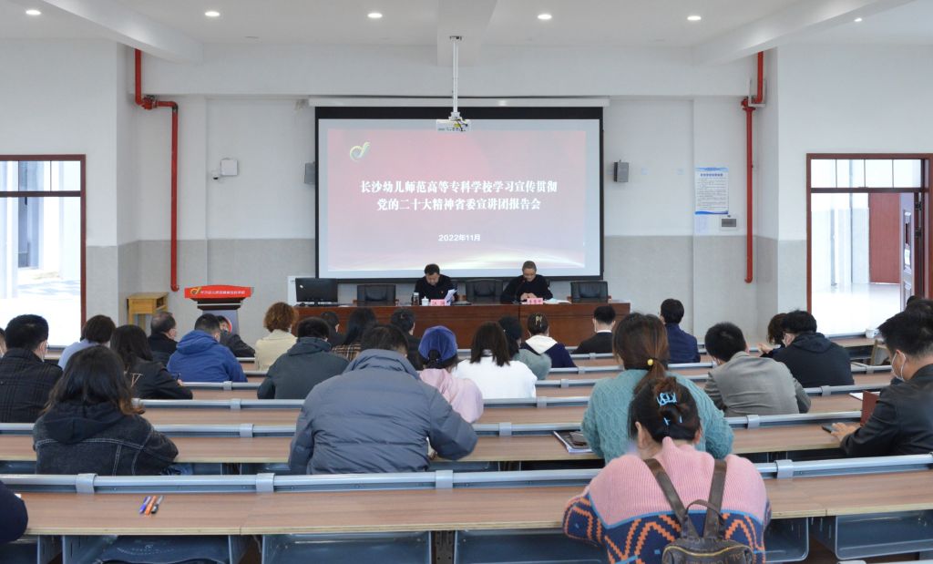 李慧中在总结讲话中指出,学习宣传贯彻党的二十大精神,是我们当前和今后一个时期的首要政治任务。全校师生要以报告会为指引,进一步落实学习贯彻党的二十大精神的各项要求,紧密结合高等教育和学校实际,推动党的二十大精神在长沙幼专落地生根,见行见效,把武装头脑、指导实践、推动工作作为出发点和落脚点,紧紧围绕立德树人根本任务,不断开创我校事业改革发展新局面。