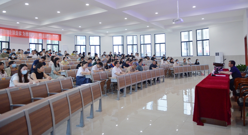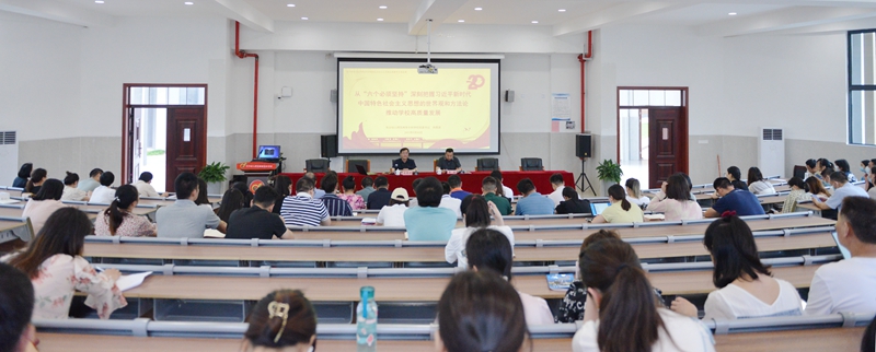 5月30日下午,我校党委书记肖思源在德馨楼132教室以《从“六个必须坚持”深刻把握习近平新时代中国特色社会主义思想的世界观和方法论 推动学校高质量发展》为题,为全体党委班子成员,中层干部,党总支、支部书记、委员以及全体在职党员教师讲授了一堂立意深远、思想深刻的专题党课,其他教职工线上同步收听,党课由学校校长李毅主持。