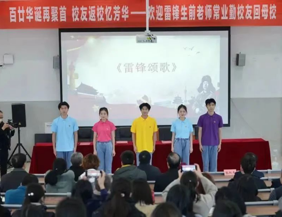 3月28日下午,我校优秀校友雷锋生前老师常业勤回母校开展雷锋精神分享会。万婴教育集团党委书记、教授张红专,我校校长李毅、党委副书记兼纪委书记李慧中出席分享会,200余名中层干部和师生代表到场聆听。会议由我校口语教师杨祖爽主持。