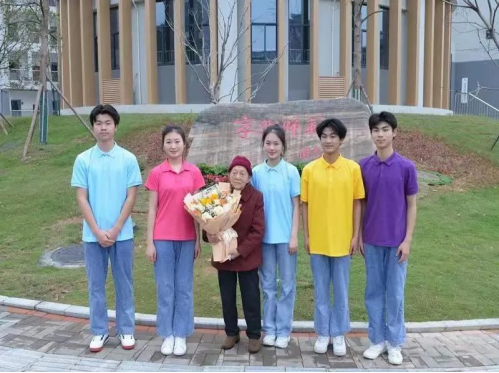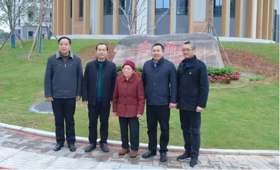 常业勤老师与学校领导在“宁乡师范”校名石前合影留念。分享会结束后,常业勤老师在学校领导的陪同下,重返母校湖南宁乡师范学校旧址,回忆当年学习生活的点滴。89岁高龄的常业勤老师,仍欣然为母校百廿华诞题词“祝愿母校像永不凋谢的花朵越开越艳丽”,表达对母校的深情祝福。