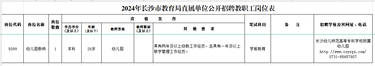 1.《2024年长沙市教育局直属单位公开招聘教职工岗位表》