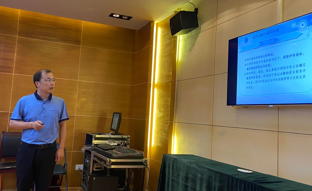 随后,6位课题负责人依次进行开题汇报。其中,质量管理与督导评建处处长何曙光作为《高质量发展背景下职业院校教育评价体系研究》课题负责人,从问题的提出、研究综述、研究目标、研究内容和方法、研究分工和预期成果等方面详细汇报了课题情况。与会专家对开题报告的撰写质量给予高度认可,同时也提出了详细的论证建议,赵琼花提出,研究内容可以联系部门职能加入自评;雷世平强调了问题提出公式,他指出,研究述评要有关于职业院校的教育评价体系研究,研究内容可与研究方法结合起来阐述;罗慧玲指出,教育评价要聚焦诊断与改进的难点和痛点,准确把握关键质控点。